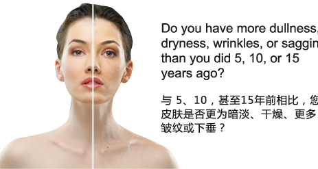 婴儿的皮肤能迅速的在28天内痊愈。新的干细胞具有完全修复的能力。然而,25岁以上的成人皮肤却需时超过40天才能更新。皮肤更新能力已减缓。您将发现自己的皮肤不再显得水润或年轻,而且您的复原能力不再如以前般快速。 当我们的年龄增长时,我们的皮肤也受到多种因素,包括阳光照射、环境污染、个人健康、所摄入的食物等等所影响。这些因素将会降低皮肤的再生能力,并减少皮肤上主要干细胞与胶原蛋白的供给。